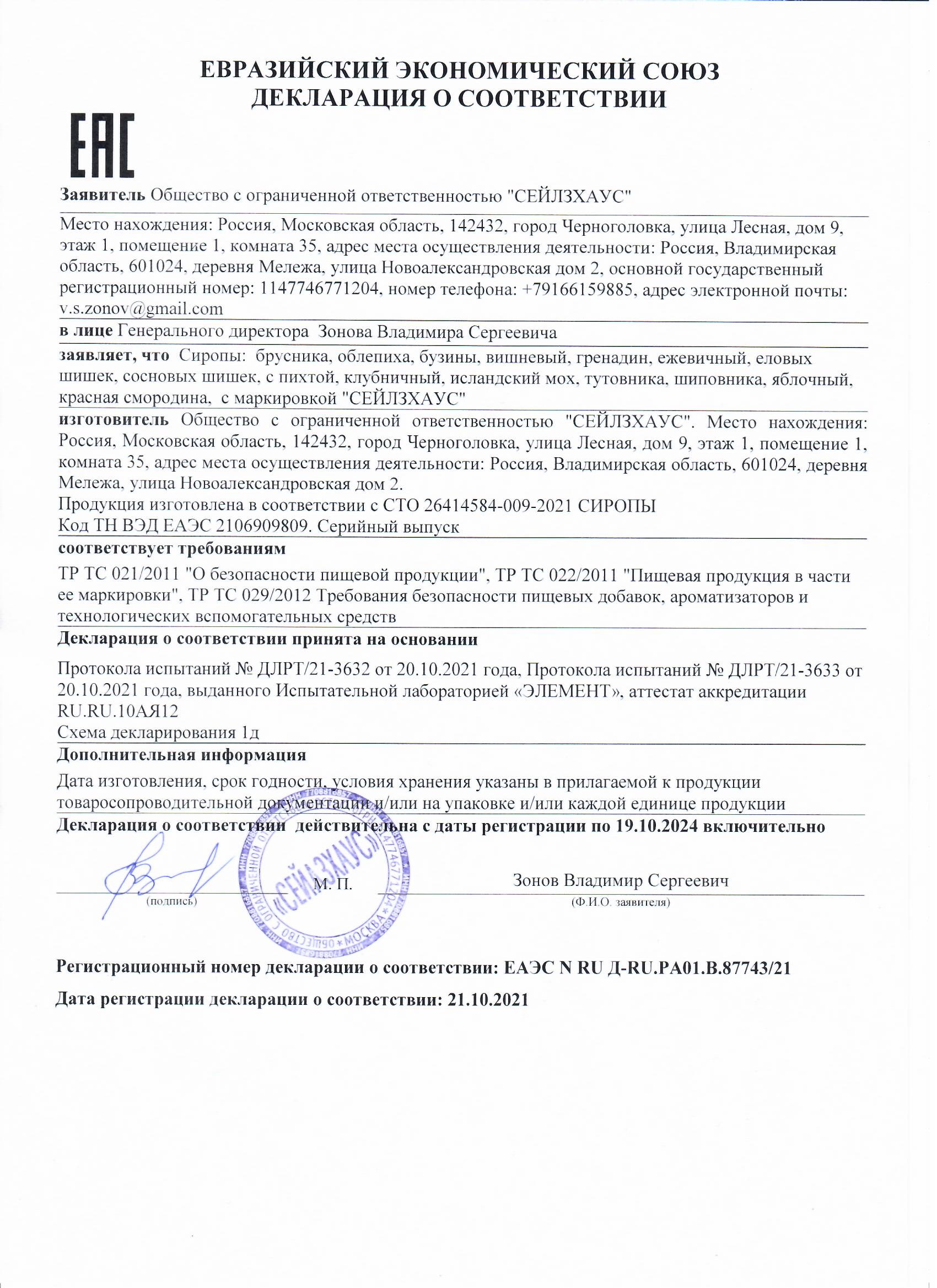 Сертификаты: